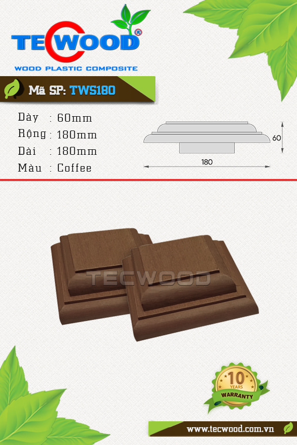 Nắp chụp đầu trụ cột TecWood TWS180 màu Cedar là dòng sản phẩm chất lượng, được sản xuất theo dây chuyền công nghệ hiện đại từ Nhật Bản, có vai trò quan trọng trong thiết kế, thi công các hạng mục ngoại thất tại Việt Nam.