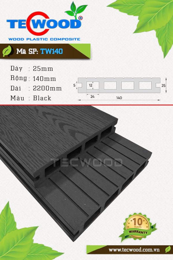 TW140 quy cách 25x140x2200mm rất thích hợp cho việc lót sàn ngoài trời, trang trí ngoại cảnh.