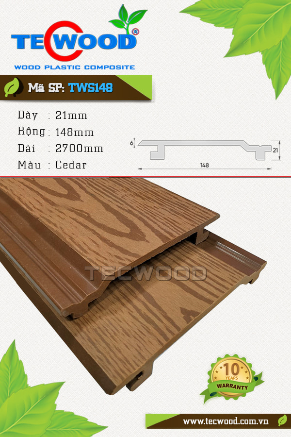 Sản phẩm tấm ốp TWS148 hiện đang rất được ưa chuộng trong trang trí các hạng mục ngoại thất tiêu biểu như: ốp tường gỗ nhựa, ốp trần nhà, mái hiên, ban công,...