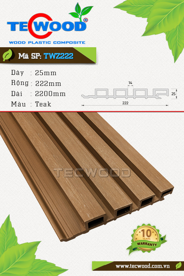 Nếu bạn đang tìm kiếm giải pháp ốp tường – ốp trần – ốp mặt tiền bằng gỗ nhựa lam sóng 25x222x2200mm, TWZ222 màu Teak của TecWood là lựa chọn bền vững, hiệu quả và tối ưu về lâu dài.