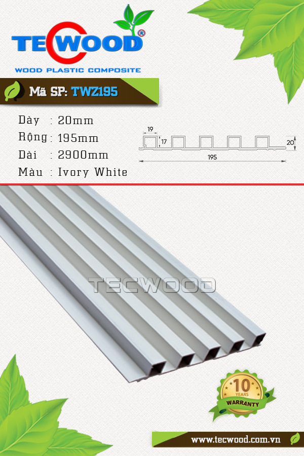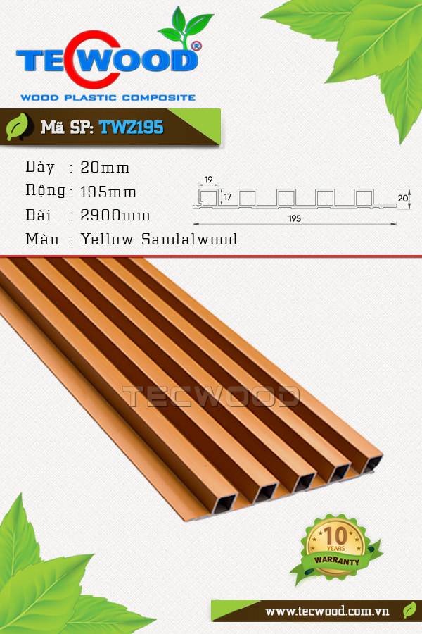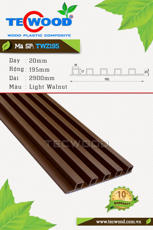 Trước nhu cầu trang trí nội thất ngày càng tăng cao, đầu tháng 6 vừa qua TecWood đã đưa ra thị trường dòng sản phẩm mới có tên gọi là tấm ốp gỗ nhựa TecWood TWZ195 với nhiều ưu điểm vượt trội. Sản phẩm được tạo thành từ hai thành phần chính là bột gỗ và nhựa PE, hay còn gọi là gỗ nhựa WPC.
